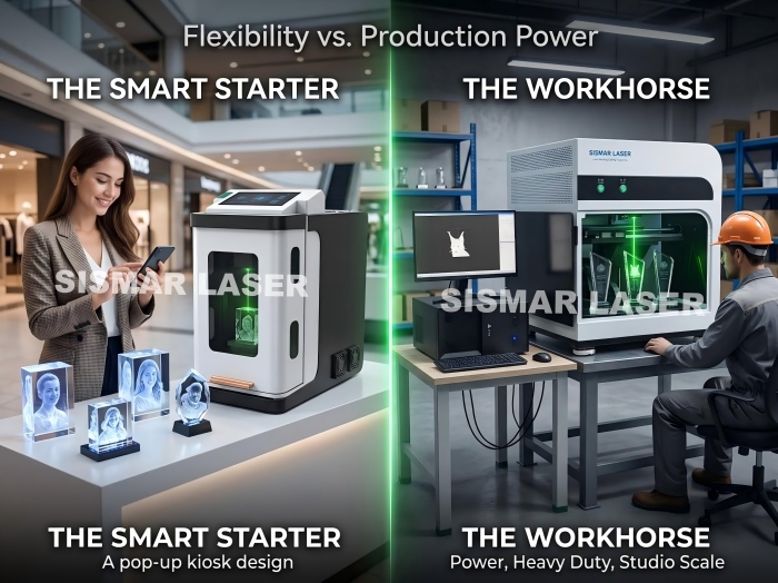 Para el 90% de los negocios de retratos en cristal y regalos personalizados, la Mini Series ofrece el mejor equilibrio entre: